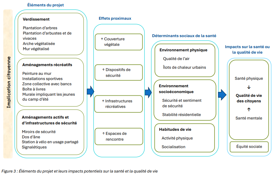 Dans le cadre d’une collaboration avec Nature Québec, l’équipe PIRAMIDES a mené une évaluation d’impact sur la santé (EIS) sur un projet d’implantation d’une Ruelle verte et active dans le Vieux-Limoilou. Cette EIS est menée par Mitantsoa Rakotozanany, étudiant au Doctorat en aménagement du territoire et développement régional (ATDR). Il est soutenu par les professeurs Alexandre Lebel (ESAD) et Thierno Diallo (Sciences infirmières), est aujourd’hui publiée en libre accès (BANQ).
