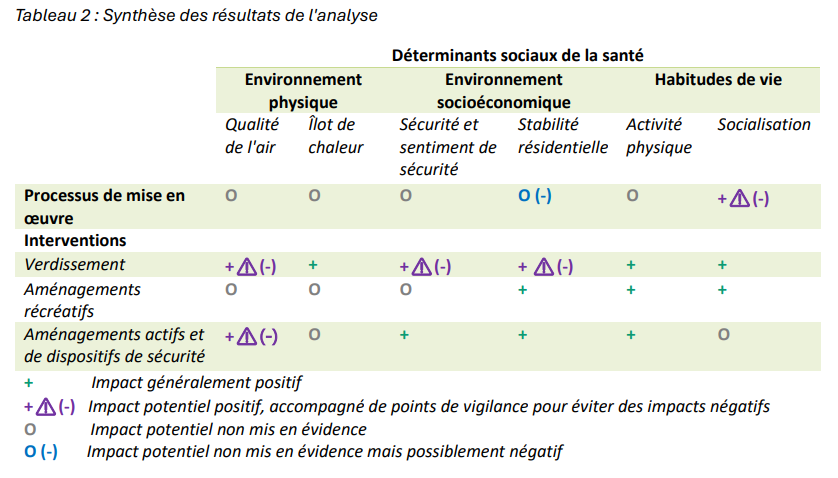 Suite à l’analyse, une synthèse des impacts a été produite (Tableau ci-dessous) et une dizaine de recommandations en découle.